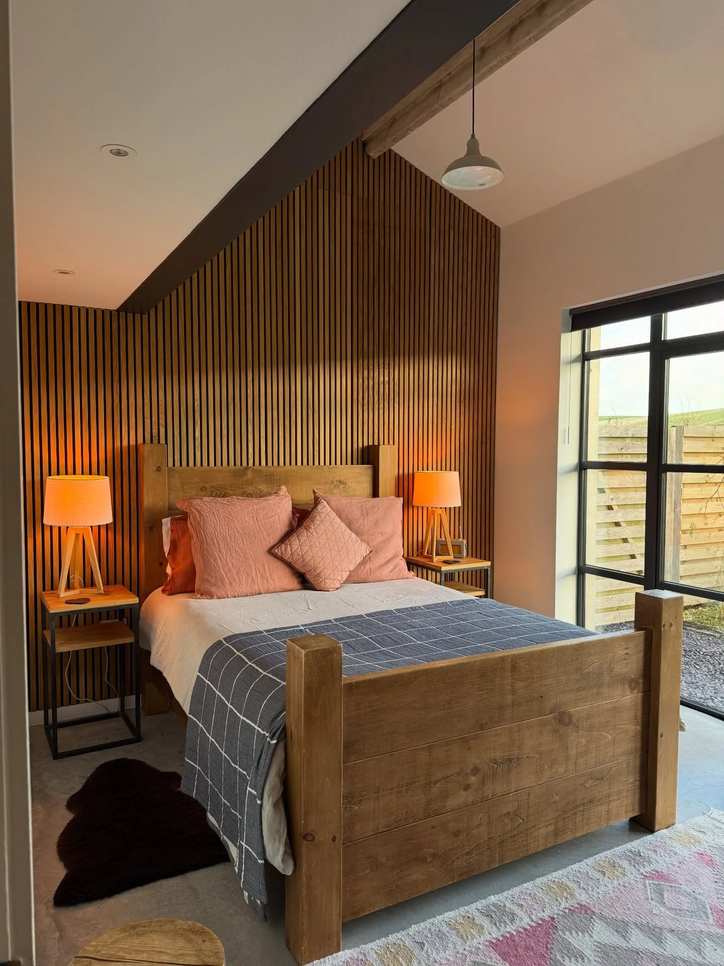 On the ground floor, there are two double bedrooms: one is en-suite and suitable for wheelchair users. The third bedroom is a cosy twin room on the mezzanine level, complete with a walk-in shower and a bath.